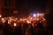 たいまつの炎の帯が大神山神社奥宮から博労座駐車場まで連なり、参道を照らす幻想的な灯りは、人々を幽玄の世界へいざないました。(6月6日・撮影)