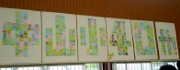 体育館に集まった児童・保護者・教員がメッセージや絵を書いてモザイクアートを完成させ、校歌を声高らかに歌って、40年の節目を祝いました。(9月14日・撮影)