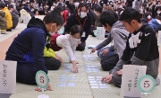 午前中は、恒例となった百人一首大会がありました。読み手の声を聞き逃すまいと、どのチームも真剣。低学年でもしっかり歌をおぼえており、白熱した戦いになりました。(2月4日・撮影)