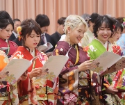 艶やかな振袖姿、凛々しいスーツ姿の新成人が式典に臨み、来賓やかけつけた恩師らの祝福を受け、大人への第一歩を踏み出しました。(1月3日・撮影)